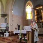 - Szent Mihály Főangyal kegyképe alatt mons. Fiser János atya az ünnepi szentmise végén elmondja a Szentlélek vezetéséért az imát, hogy mindannyiunk lelki adományaival szolgáljuk a délutáni közös munkánkat.