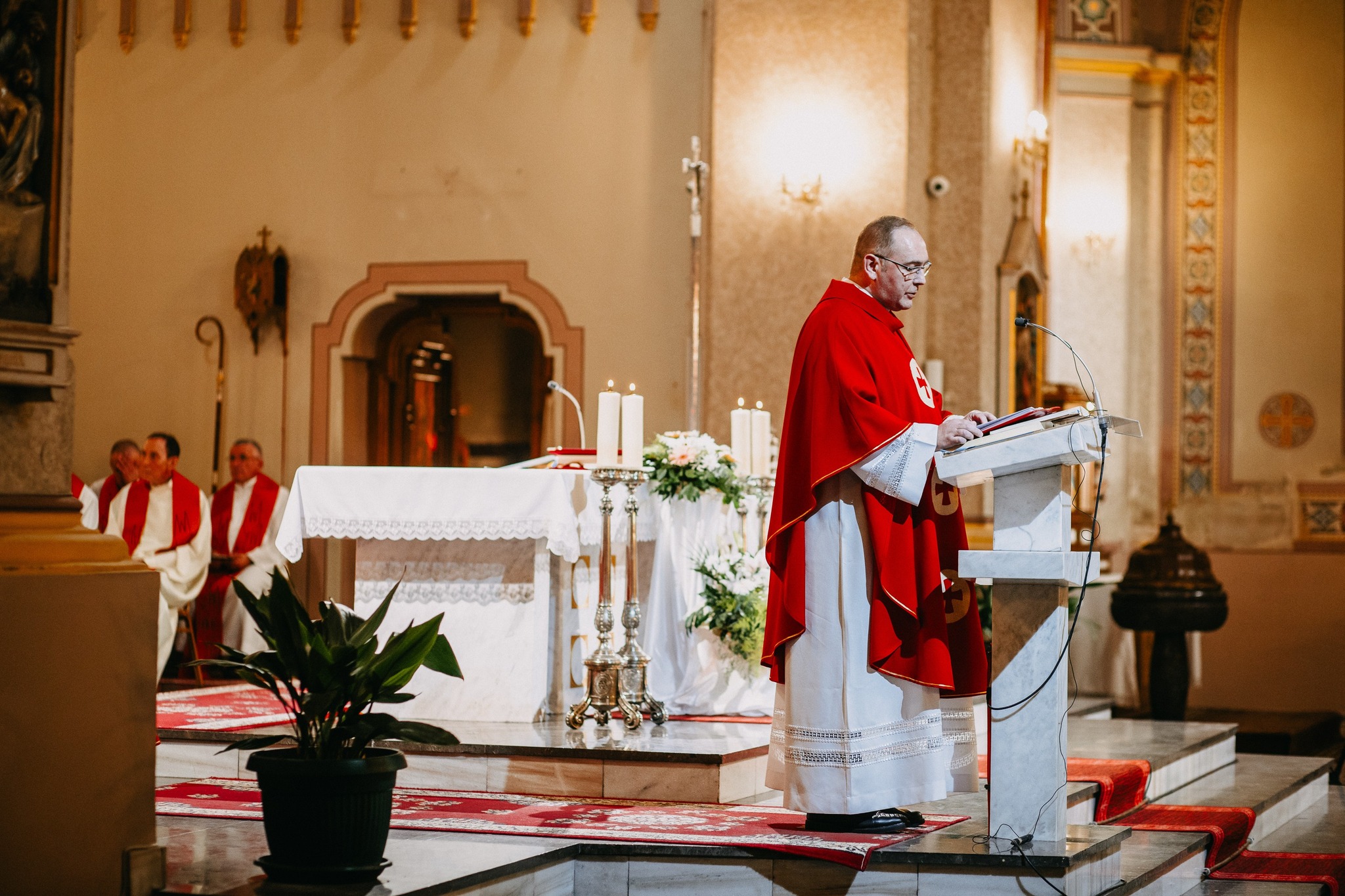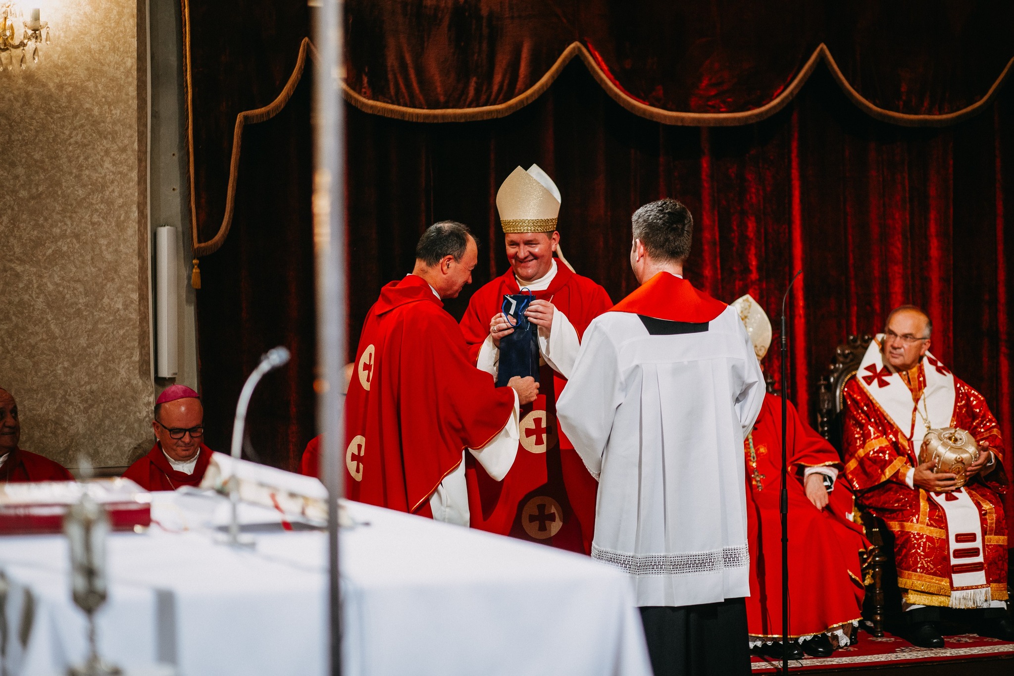 A szentmise elején a házigazda püspök, msgr. Mirko Štefković köszöntötte a jelenlévőket, külön üdvözölve a szertartás főcelebránsát, Gangemi nunciust. Megköszönte, hogy elfogadta a meghívást, hogy vezesse a szentmisét és bátorítsa a híveket, majd arra kérte, tolmácsolja Leó pápának az egész egyházmegye hűségét és köszöntését. Háláját és köszönetét fejezte ki továbbá a püspököknek…