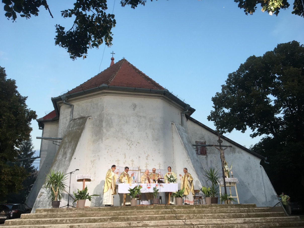 Adjunk hálát, hogy egyházmegyénkben itt van ez a gyönyörű kegytemplom, amely időről időre összehoz bennünket, hogy messzebbre lássunk, távlatok nyíljanak előttünk! Mária lelkületével nyíljon meg bennünk az az isteni távlat, amely az ő szavának befogadásából, meghallgatásából és cselekvéséből áll! Tanuljunk Máriától, öltsük magunkra mint páncélt mennyei édesanyánk szép vonásait, s akkor egészen biztos, hogy testi, lelki egészségünket, épségünket is vissza fogjuk nyerni, meg fogjuk őrizni! – mondta homíliájában Pastyik Róbert általános helynök a töröktopolyai búcsúi szentmisén.