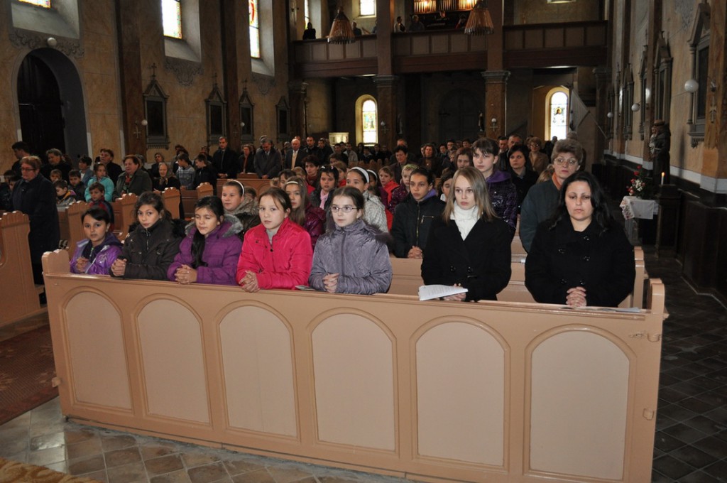 Az ünnepi szentmise keretében a főpásztor megáldotta a templomot, majd a helyi általános iskolások, akik évek óta kivétel nélkül részt vesznek az iskolai hitoktatásban, ünnepi programja következett, hiszen a jeles eseményen az egész iskola – tanárok és diákok – közösen vettek részt. Kátity Enikő hitoktató a templom védőszentjéről, Szent István királyról, valamint a templom és iskola megtartó erejéről készített színes, verses-énekes összeállítást. A szentmise zenei szolgálatát ezúttal a hetedik osztályos Jenován Flórián látta el.