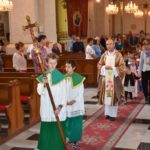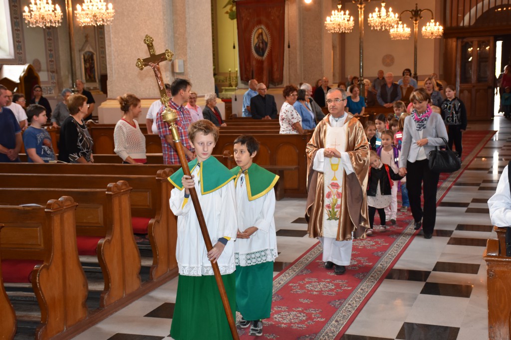 Tanítónőjükkel, Gera Annával és hitoktatójukkal, Juhász Irénnel vonultak be a tanévnyitó szentmisére a nagybecskereki alsósok szeptember 17-én. A szentmisét msgr. Gyuris László székesegyházi plébános mutatta be, a zenei szolgálatot a Nepomuki Gyermek- és Ifjúsági Kórus látta el Kornélia nővér vezényletével és Elias Ohoiledwarin SVD atya gitárkíséretével.